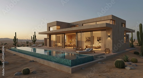 Fototapeta premium Desert Modern House Infinity Pool Sunset View Luxury Villa Architecture