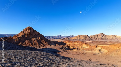 © Fiz, Naklejka premium Desert mountain vista, moonlit landscape