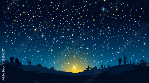 © Sleeping Carbuncle, Fototapeta premium Desert Night Sky With Bright Stars and Sunrise