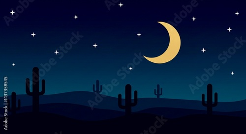 © NoorStockHouse, Naklejka premium Desert night under a giant moon vector background.
