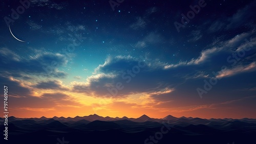 Fototapeta premium Desert nightscape with sand dunes and a starry sky, capturing the tranquil beauty of twilight