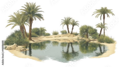Obraz premium Desert Oasis with Palm Trees and Water Realistic Scene Transparent Background