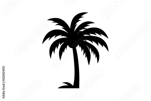 © MdHabibur, Obraz premium Desert Palm Tree Silhouette on White Background nature