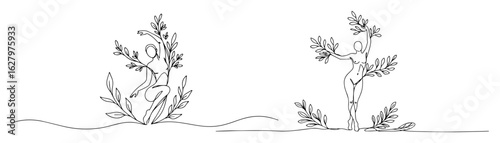 © Wieslaw, Naklejka premium desert plants cactus and flora vector outline monoline