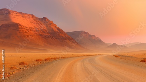 © MediaStockAI, Naklejka premium Desert Road at Sunset