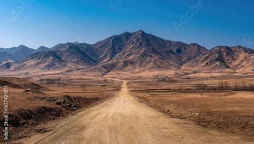 Naklejka premium Desert road leading to mountains under clear sky