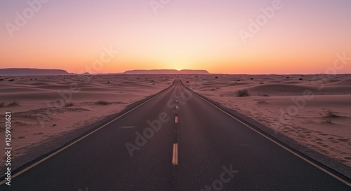 © Tiara, Fototapeta premium Desert Road Leading to Sunset Creates Travel and Adventure Theme