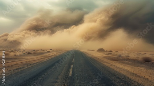 © leklisun, Fototapeta premium Desert Road Under Dust Storm