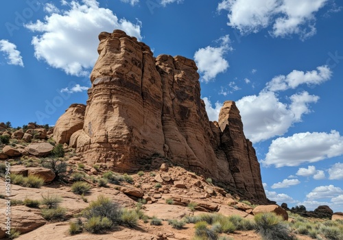 © Ai Images Stock, Fototapeta premium Desert rock formation under blue skies