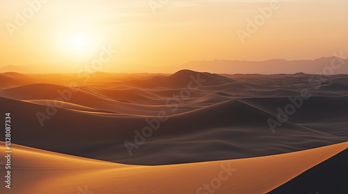 © Rapit, Obraz premium Desert Sunset: Golden Sands & Distant Mountains.