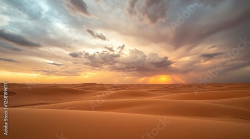 © BONDET LUCKY, Fototapeta premium Desert Sunset Landscape Dramatic Sky Sand Dunes