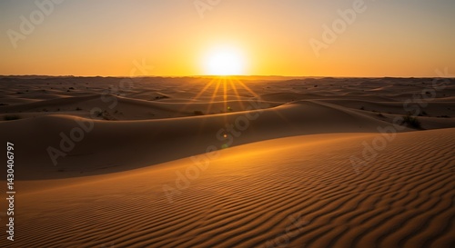 © zerostudio.id, Naklejka premium Desert Sunset Landscape with Sand Dunes