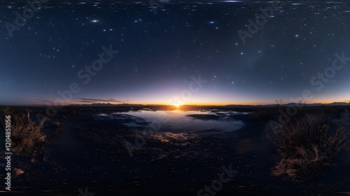 © Berkah, Fototapeta premium Desert Sunset Starry Night Sky Reflection