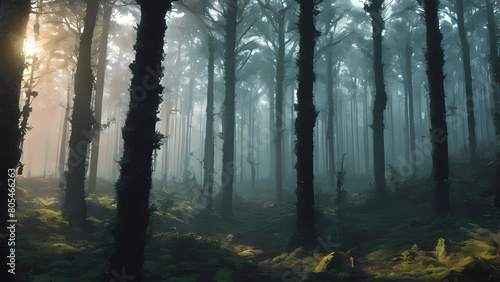 © lone wolf, Naklejka premium deserted forest with view of dry trees,Generative AI