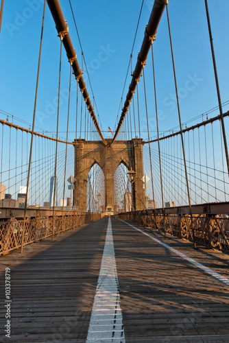© XtravaganT, Fototapeta premium Deserted Pedestrian Walkway on Brooklyn Bridge
