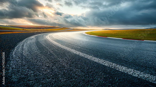 © Raffaza, Naklejka premium deserted racetrack against a clear sky backdrop