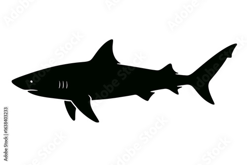 Naklejka premium Design a black silhouette of a Tiger Shark white background clean vector shape
