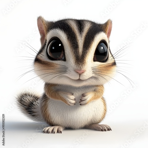 © Mr image, Obraz premium 151. "Design a 3D model of a petite chipmunk with big, charming eyes, isolated on a clean white background.