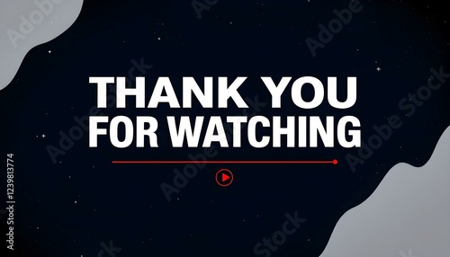 Naklejka premium Design a dark-themed banner with bold text saying ‘Thank You for Watching,’ featuring a red play