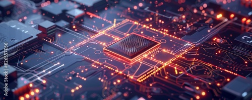 Obraz premium Design a futuristic quantum computing chip, featuring complex circuitry and...