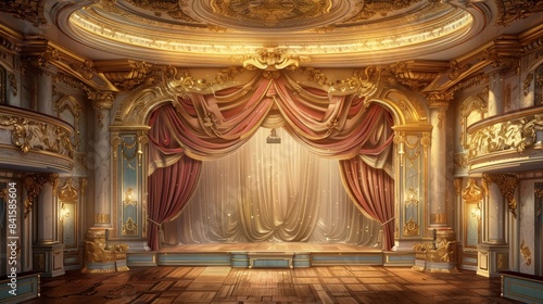 Fototapeta premium Design a scene of a grand opera house with ornate decorations and a majestic...