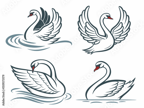 © Yeasin, Obraz premium Design A Set Of Elegant Swan Silhouette Icons Eac 8