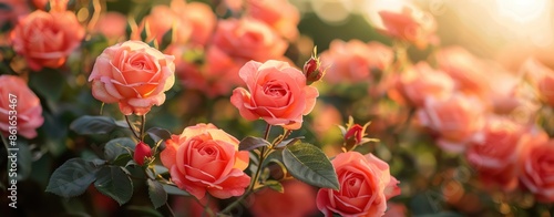 Naklejka premium Design a template highlighting a garden of roses, with ample space for text and balanced proportions.