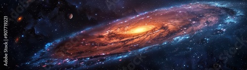 Fototapeta premium Design an aweinspiring galaxy with dark matter patterns and celestial bodies, side view, emphasizing cosmic wonders, Scifi tone, colored pastel, copy space for text,