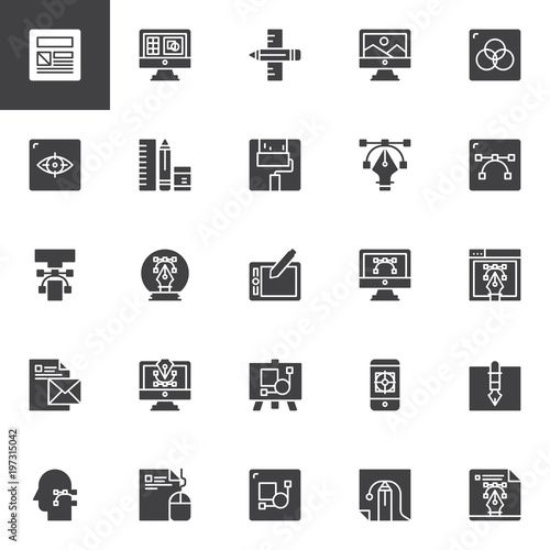 Fototapeta premium Design and Creative vector icons set, modern solid symbol collection, filled style pictogram pack. Signs logo illustration. Set includes icons as Layout, Designing, Graphic tablet, Computer art, Paint