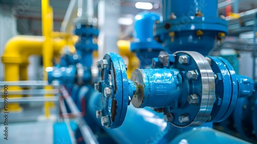 Fototapeta premium Design and engineering background with blue water pipe color for oil and gas transportation system and pipeline infrastructure