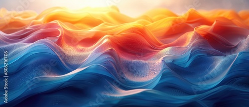 © muhamad, Obraz premium Design apps or products with an abstract background featuring soft pastel waves in gradient chartreuse, marigold, and azure hues