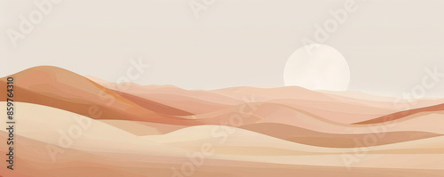 Fototapeta premium Design art background featuring a minimalist desert landscape in warm earth tones, simple lines and soft gradients creating tranquility