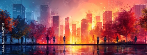 © Five Million Stock, Naklejka premium Design art concept abstract contemporary modern background business graphic idea. Work concept art design retro office poster icon hand team success digital ad artwork visual technology research job.