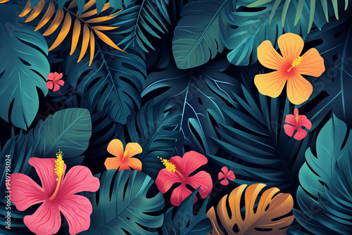 Fototapeta premium Design garden illustration graphic exotic nature plant flat summer art flower...