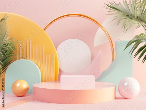 © MAX AI, Fototapeta premium Design mockup. 3D rendering geometric shapes, perfect for premium product display. Generative AI