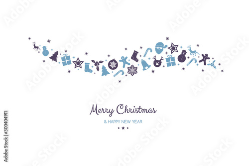 © Karolina Madej, Fototapeta premium Design of Christmas postcard with wishes and hand drawn ornaments. Vector.