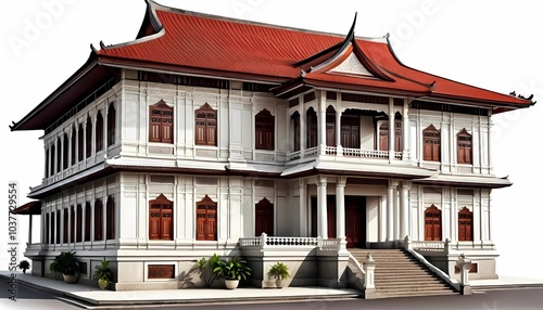 © Mas, Obraz premium Design of historical buildings of the Javanese kingdom isolated on white background. Illustration of modern Javanese royal buildings. Generate AI
