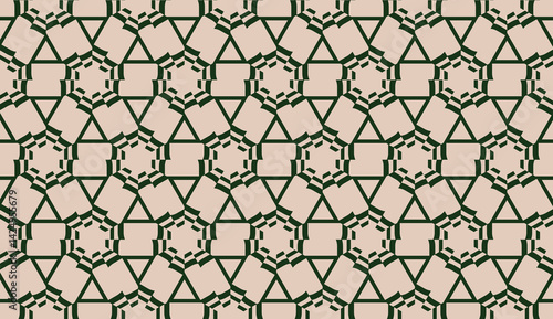 Fototapeta premium Design pattern with abstract modern ornament. Triangles style. Vector illustration. Green, brown color. Seamless
