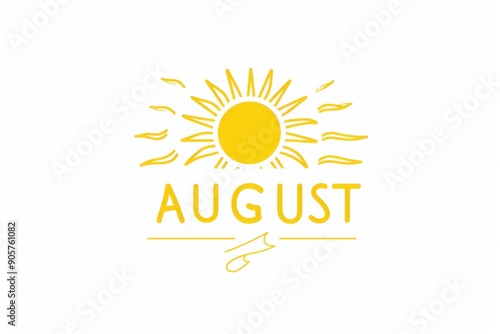 Fototapeta premium design with text "AUGUST", sun and yellow color on white background bold...