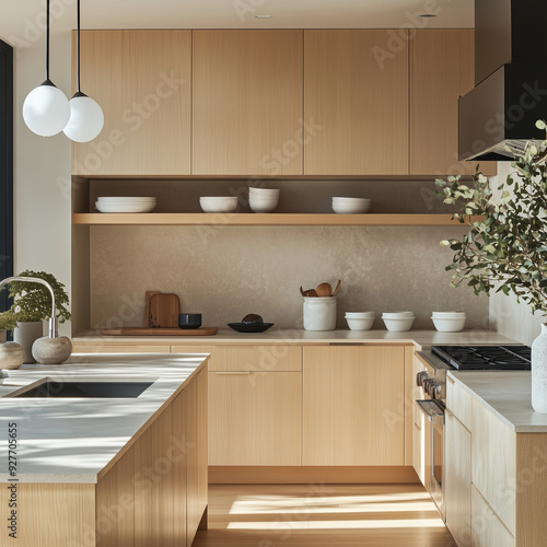 © Emily88, Fototapeta premium designed to harmonize Japanese and Scandinavian design principles in a minimalist kitchen setting, focusing on kitchenware for home cooking