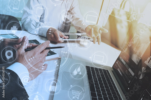 Fototapeta premium Designer Businessman hand using smart phone,mobile payments onli