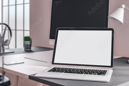 © Who is Danny, Fototapeta premium Designer desktop with white laptop