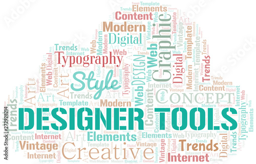 Obraz premium Designer Tools word cloud. Wordcloud made with text only.