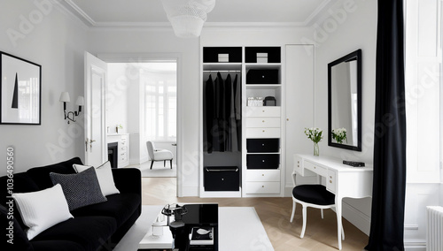 Fototapeta premium Designing a dressing room in a minimalist style, Dressing room model.