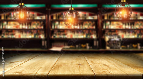 © magdal3na, Fototapeta premium Desk of free space and bar interior.