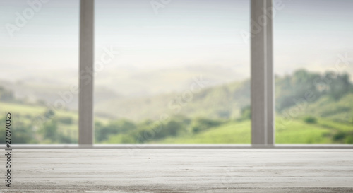 Fototapeta premium Desk of free space and summer window background