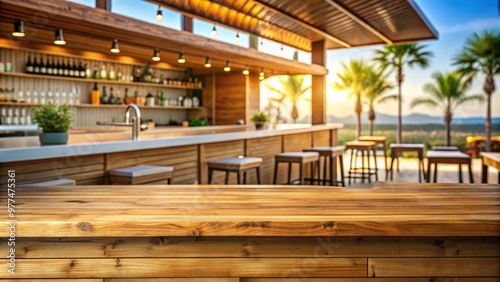 © Vibrant Visions Pixe, Fototapeta premium Desk with empty space surrounded by summer bar background