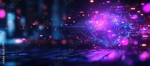 © Holo Frame, Obraz premium Desktop computer in modern office with technology hologram double exposure showcasing innovation and digital transformation themes