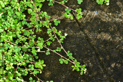 Obraz premium Desmodium triflorum has light green leaves. Grows on wet cement floors and contains algae