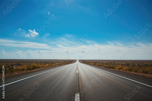 © Cyber Shutter, Fototapeta premium Desolate Highway Under Clear Azure Sky